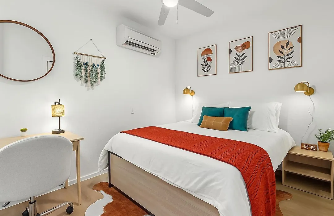 O 2Beds|2Baths|Near Convention Ctr|Free Parking|Gym Apartamento dispõe de casa de banho com secador de cabelo e produtos de higiene. Além disso, encontrará máquina de lavar.